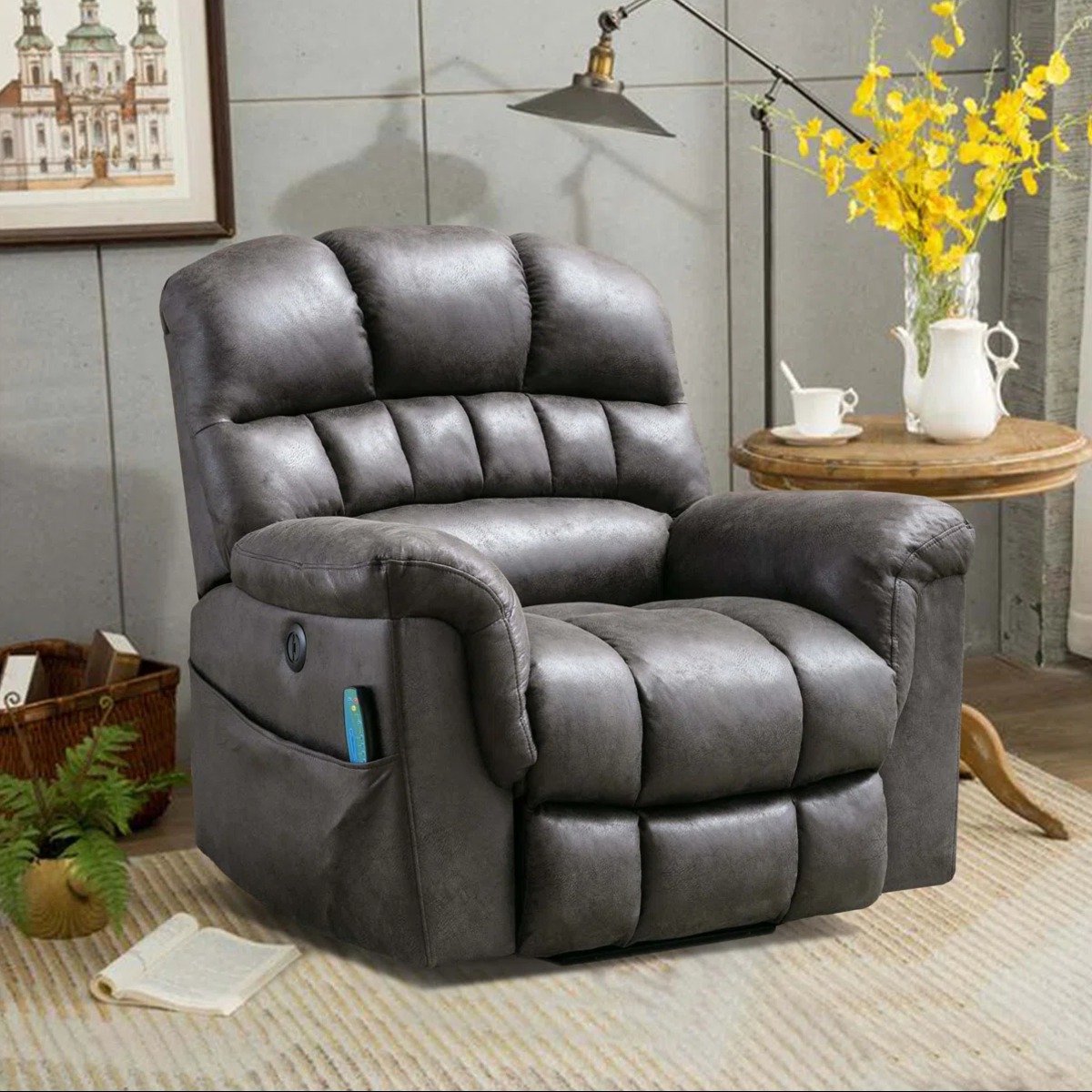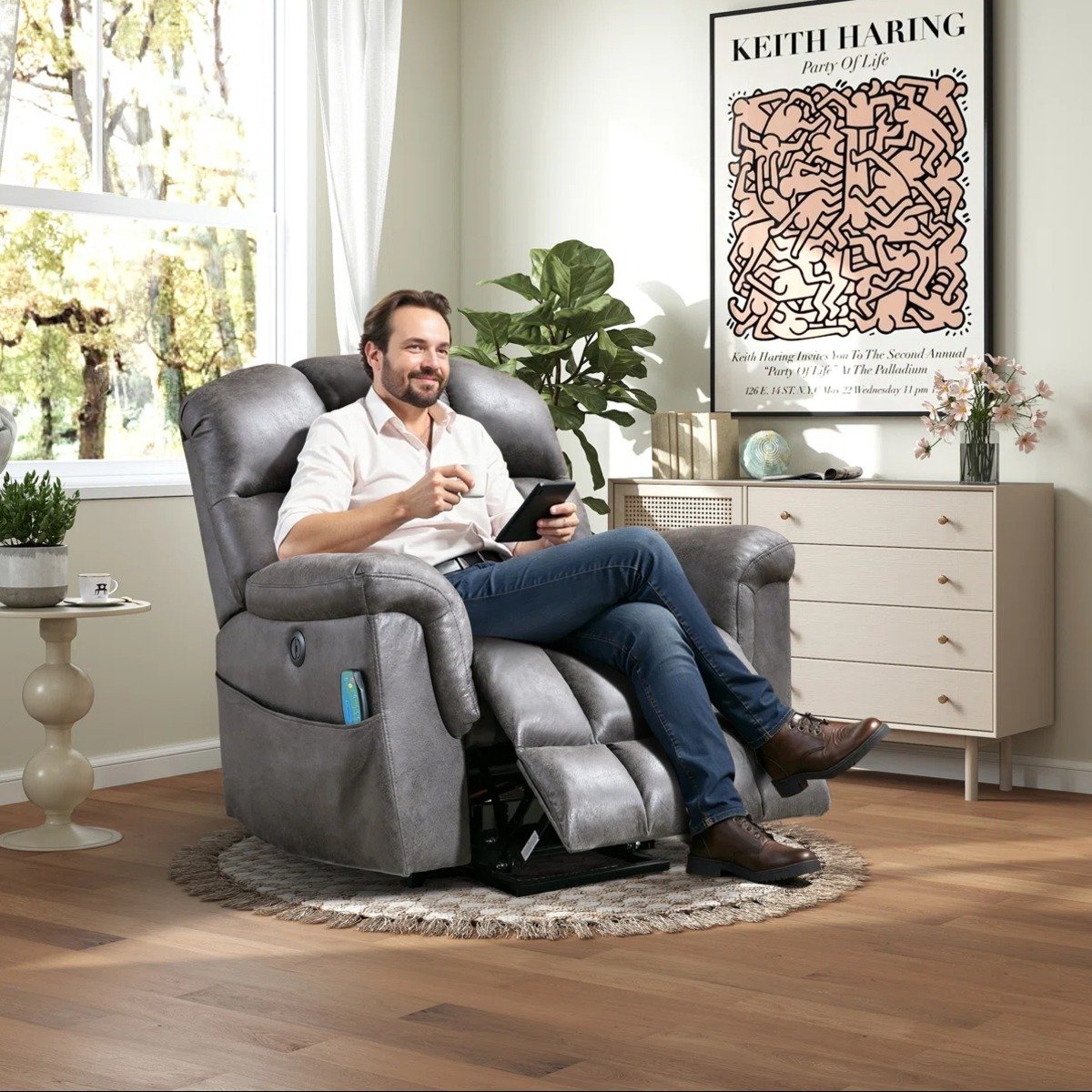 Generously padded with soft upholstery, the wide seat and tall backrest provide full-body support, making it ideal for extended lounging, reading, or watching television. The power lift mechanism is thoughtfully engineered to assist users in transitioning from a seated to a standing position with ease, offering added convenience and mobility support and electric recliner.