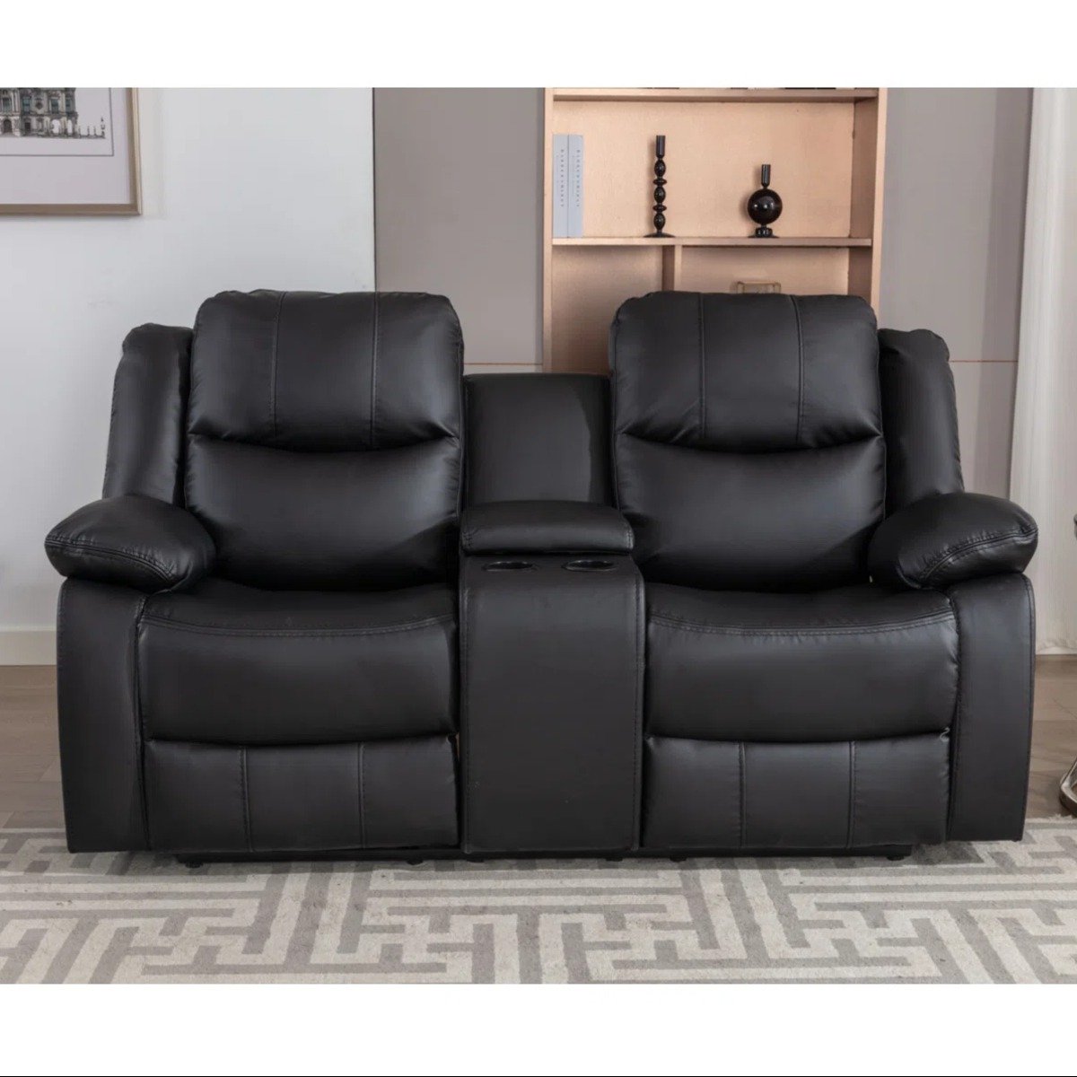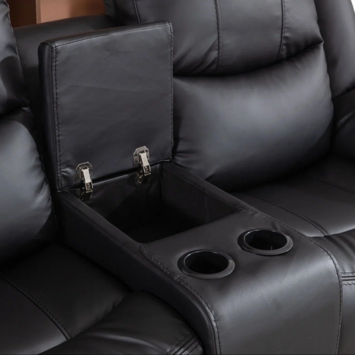 Thoughtfully designed for everyday convenience, it features a built-in center console with storage to keep essentials neatly organized, along with integrated cup holders that keep your beverages within easy reach. Plush cushioning and a refined upholstered design add a touch of sophistication to any living space.