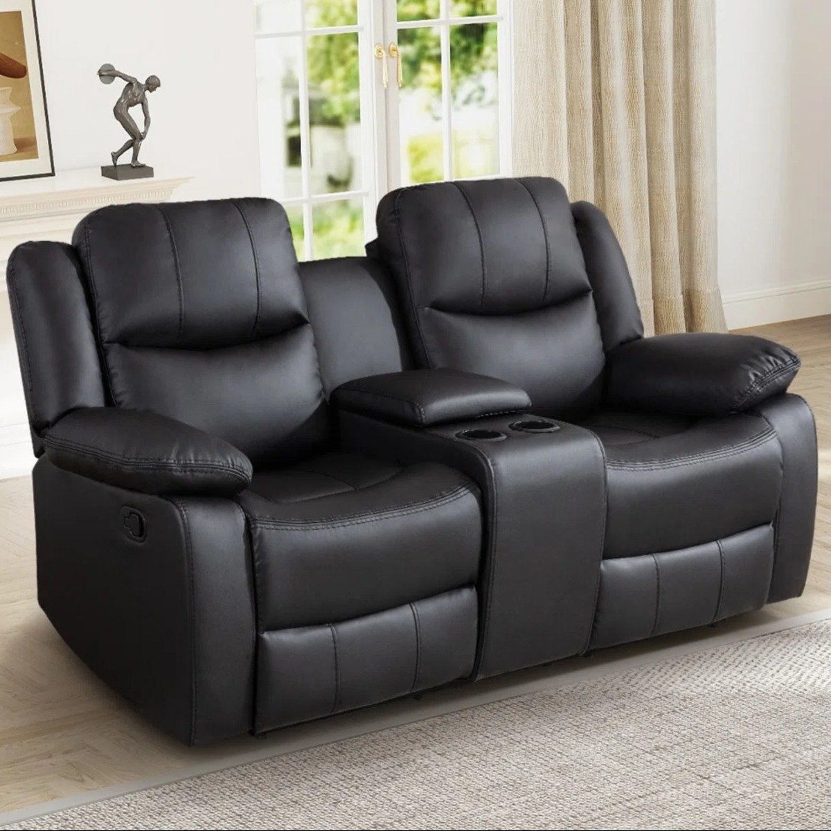 The manual reclining mechanism allows each backrest to be adjusted smoothly to your preferred position, ensuring personalized relaxation for both users. Upholstered in breathable leatherette, the loveseat promotes airflow for a cool and comfortable seating experience, even during long lounging sessions.
