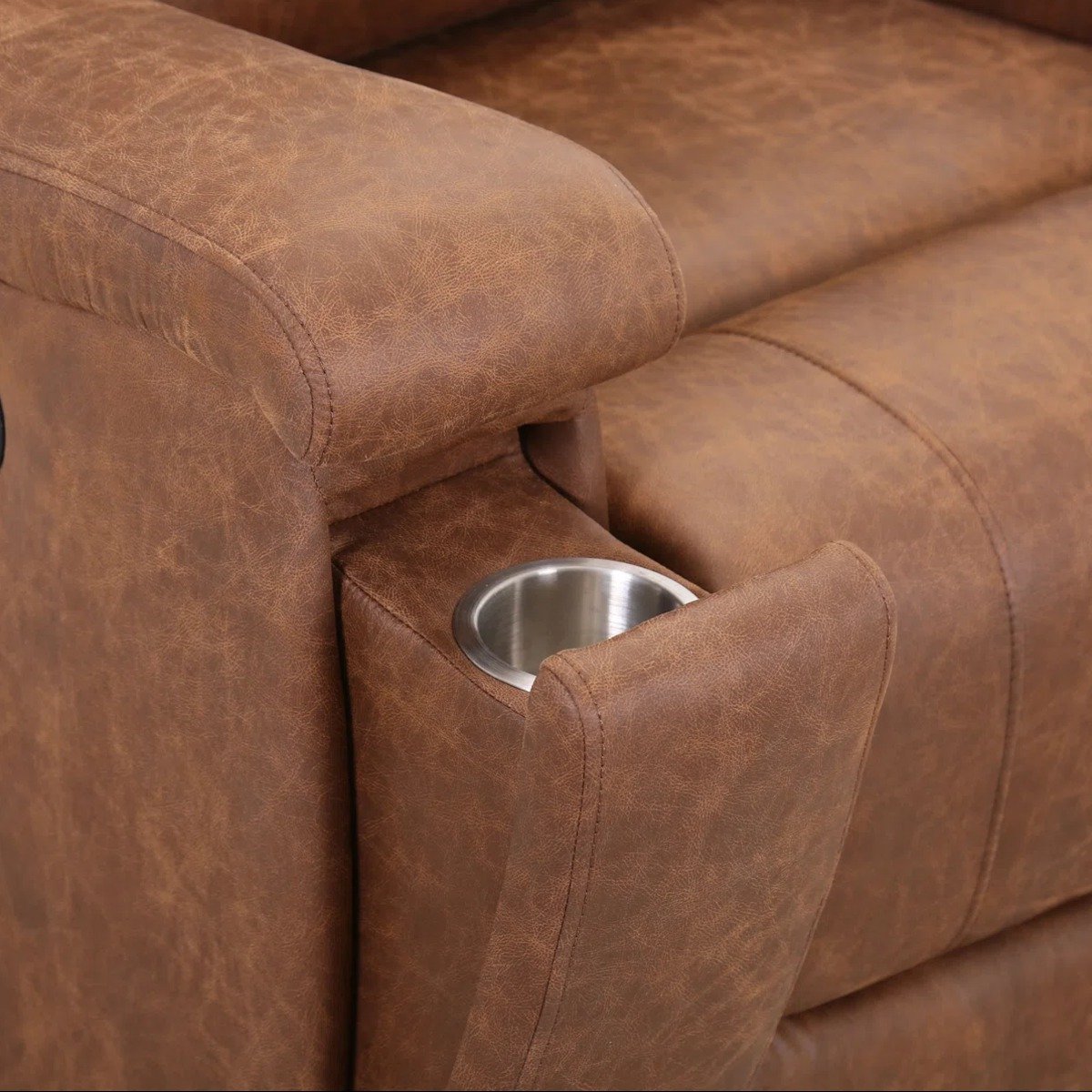Hidden Convenience: Built-in armrest cup holders that open and close for a clean look