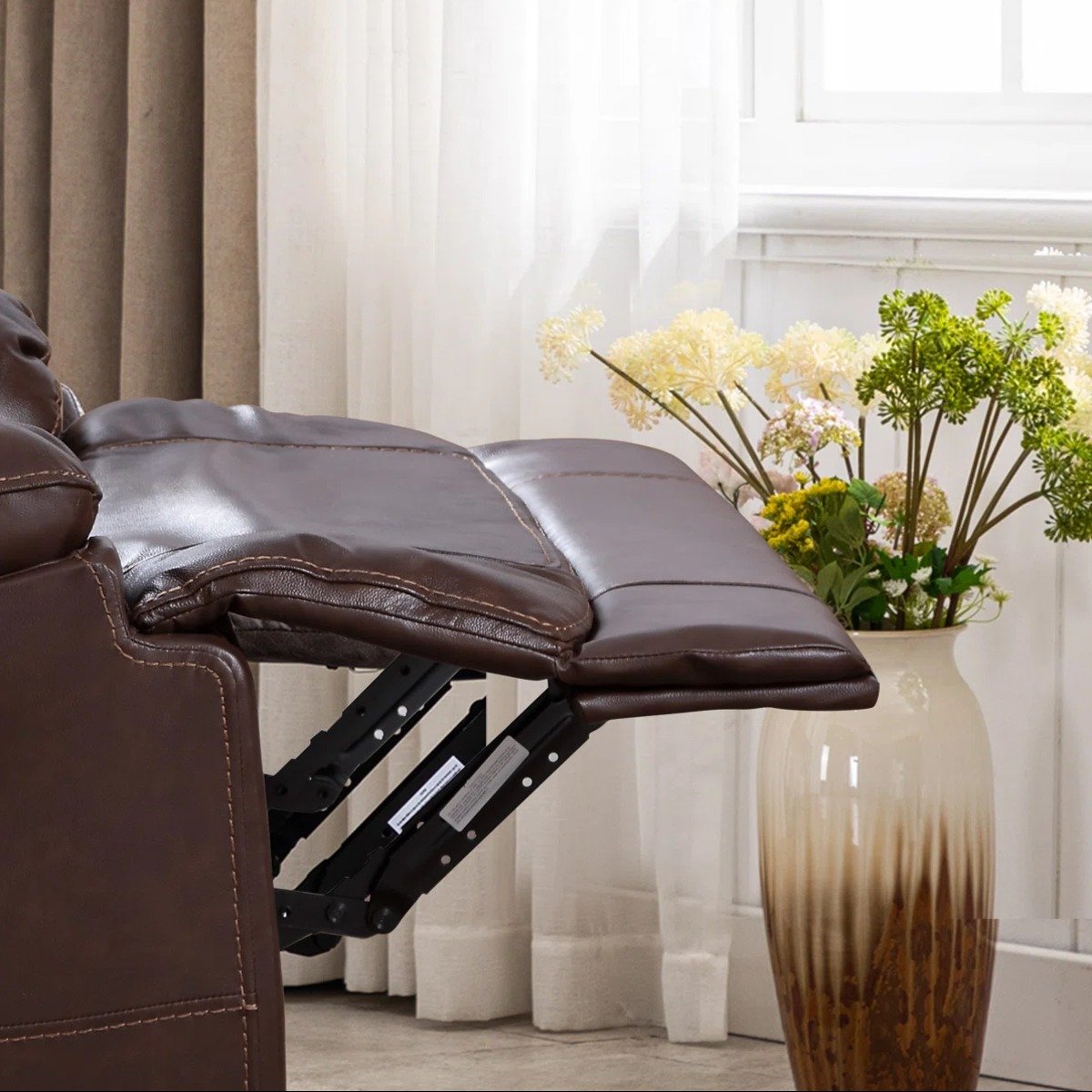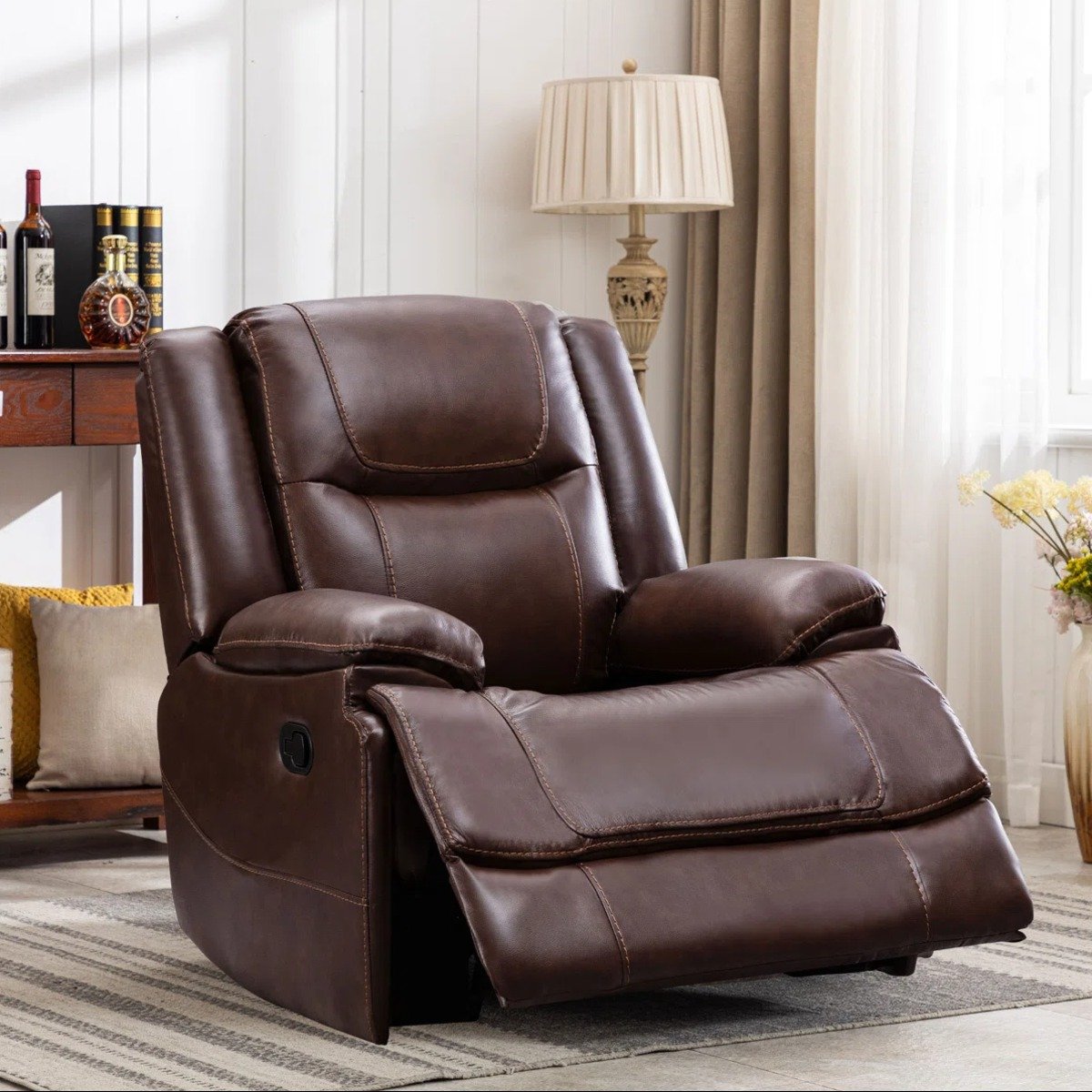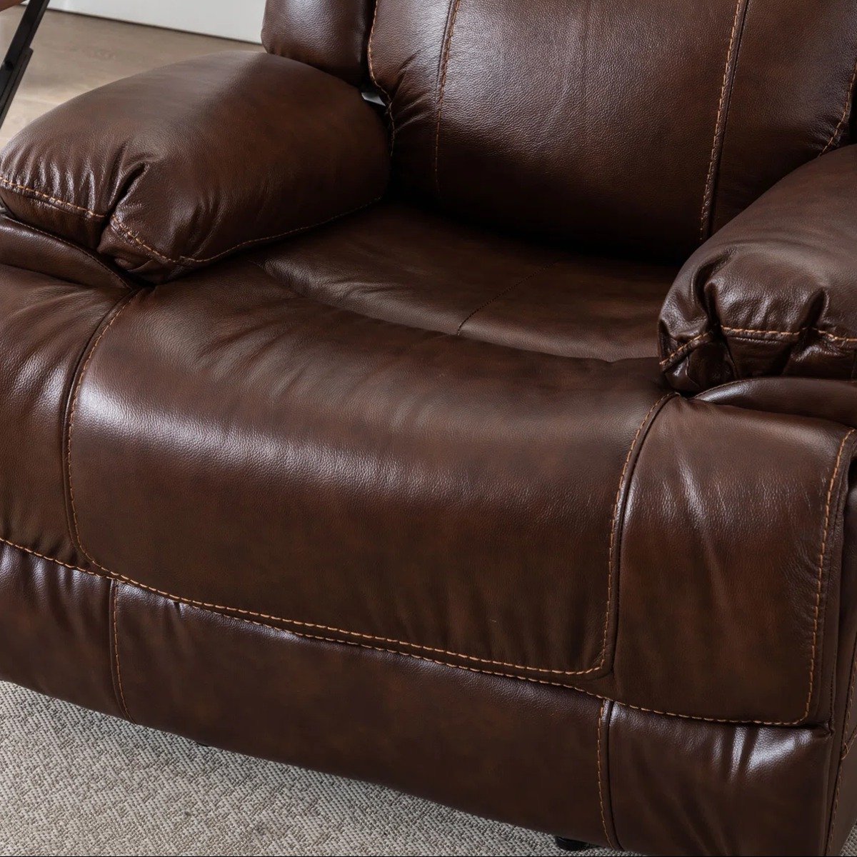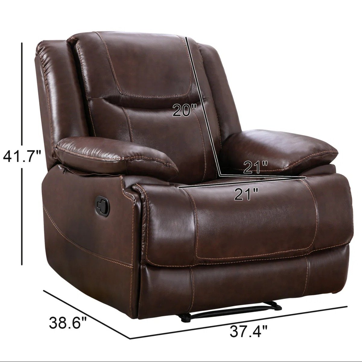 Designed with generous proportions, the recliner measures 37.4”W x 38.6”D x 41.7”H, offering a spacious and supportive seating experience. The seat dimensions of 20”H x 21”W x 21”D provide ample room to stretch, relax, and unwind in complete comfort. Whether you’re watching movies, reading a book, or simply taking a break after a long day, this leather recliner chair delivers an elevated level of relaxation.