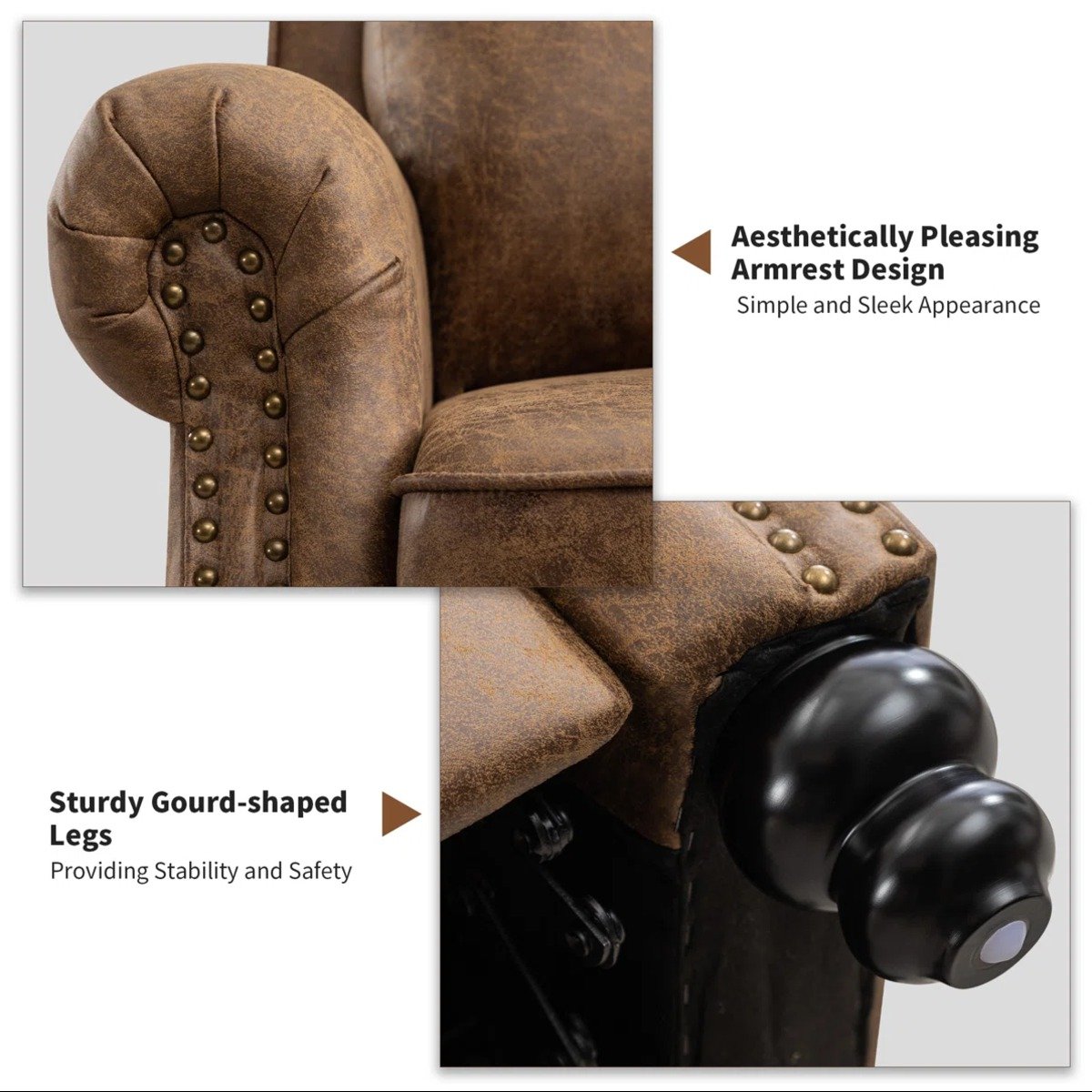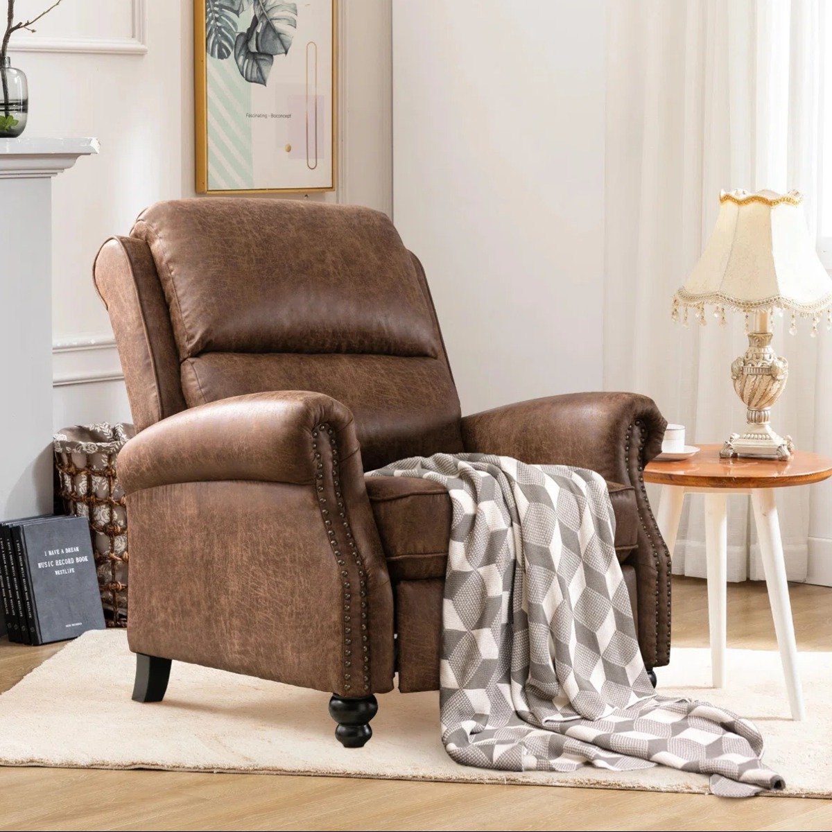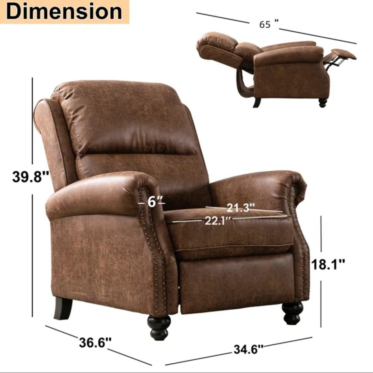 With its compact 34.6-inch width, this recliner is perfectly suited for living rooms, bedrooms, reading corners, or home offices where style and space efficiency matter equally.